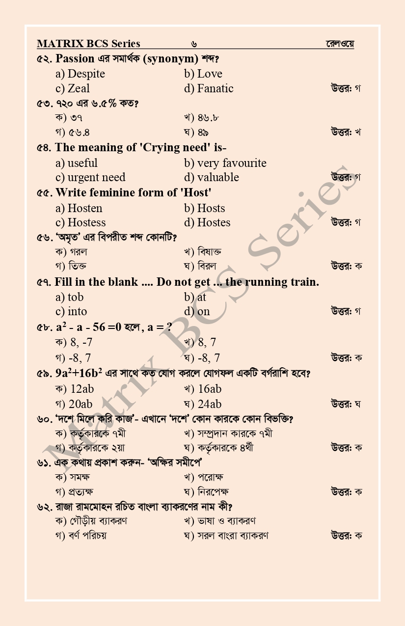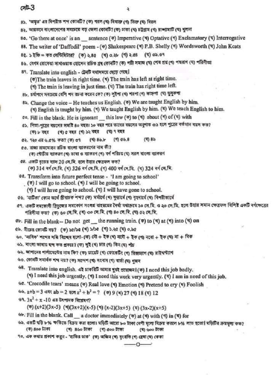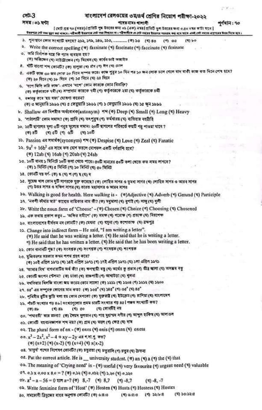 Bangladesh Railway Ticket Collector Exam Question Paper 2018
