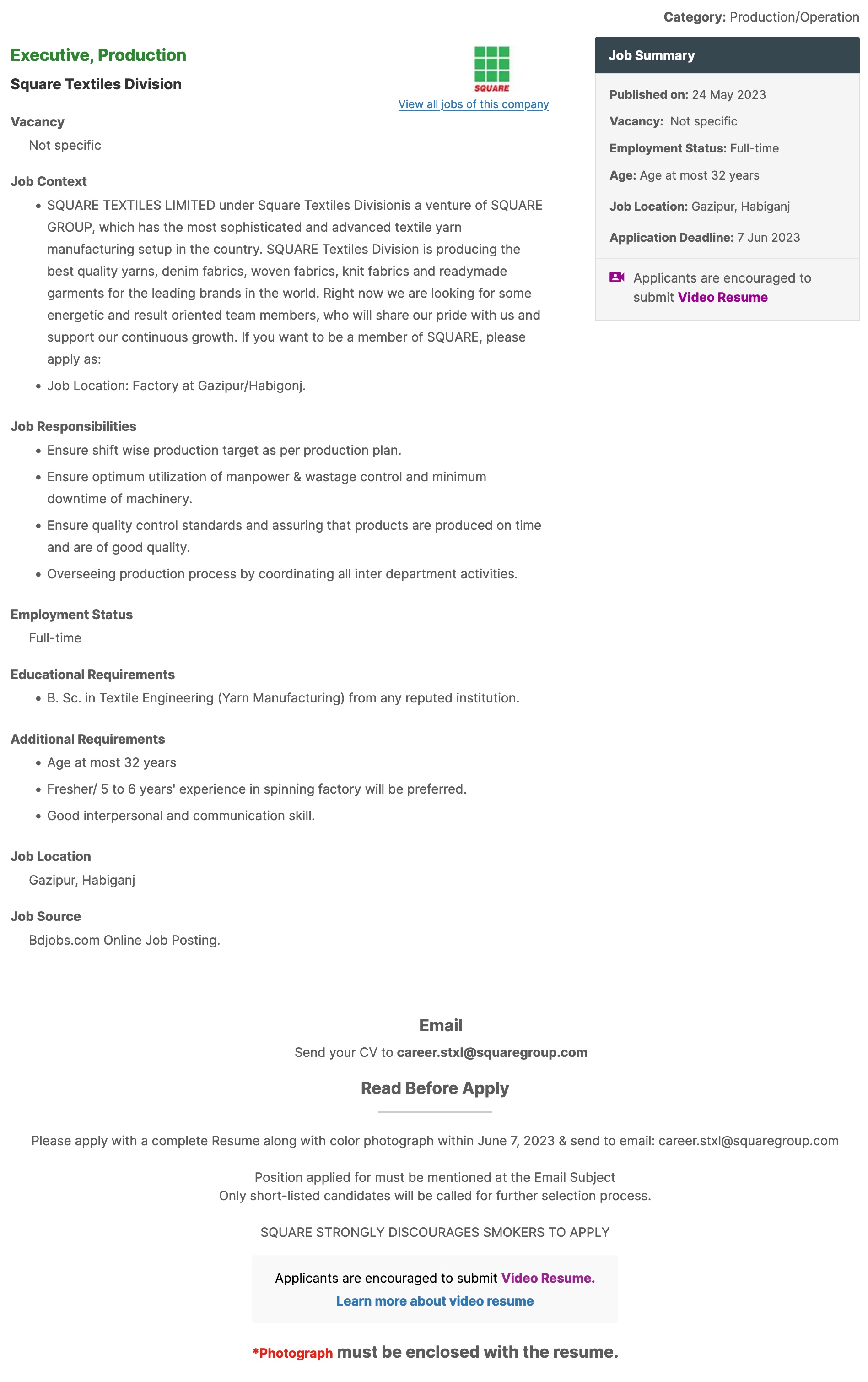 Check Square Textiles Division All Recent job Circular Posted On BD jobs here